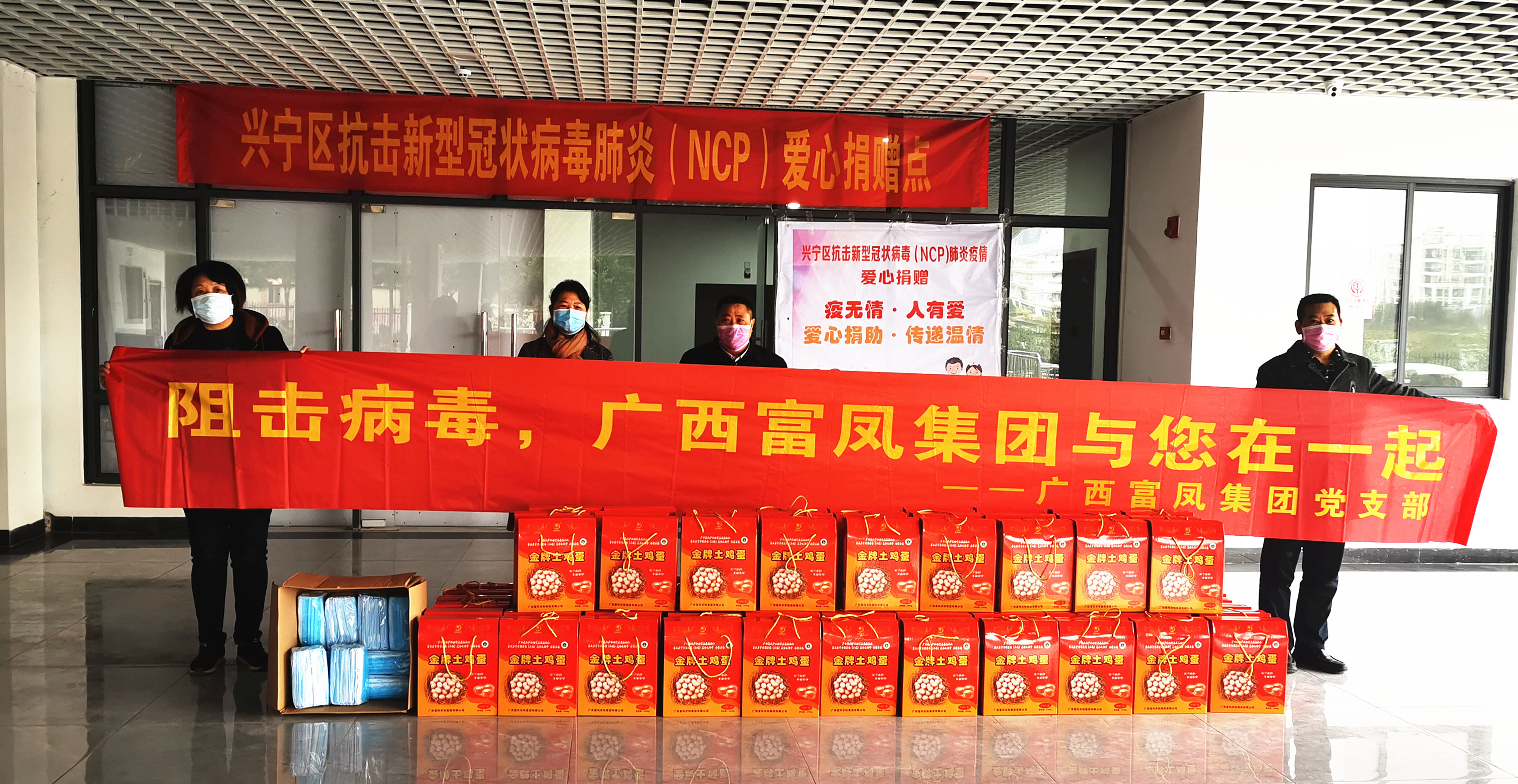 ▲2月19日,丝瓜视频污版黄色软件下载集团党支部书记蒙刚代表集团向南宁市兴宁区慈善会捐赠4800枚鸡蛋和疫情防护物资500只口罩。