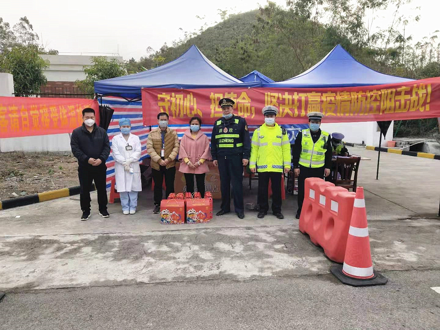 ▲2月6日,丝瓜视频污版黄色软件下载集团陆海英总经理代表集团慰问平果县坡造高速路口和平果县四塘高速路口疫情防控一线人员。